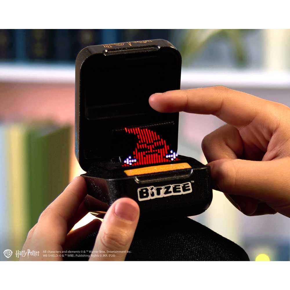 Открийте магията на вълшебния свят с Bitzee Хари Потър. Героите реагират на докосване, движение, плъзгане и накланяне с очарователни звуци и реакции при всяко взаимодействие. В стилизираната черно-златна капсула на Хогуортс съберете 20 от любимите си магьосници, вещици и същества от поредицата за Хари Потър, включително Хари, Хърмаяни, Рон, Дъмбълдор, Хедуиг, Доби и други, всички на едно място. Докато взаимодействате и играете, напълнете казана, за да привлечете нови герои – всеки събран герой пристига с Хогуортс Експрес, точно като във филмите. Изпълнявайте задачи на героите, размахвайте капсулата, за да изречете заклинания и да извикате Покровител, играйте мини игри, за да разкриете емблематични предмети и много други. Щом съберете Хари, Хърмаяни и Рон, играйте супер играта. Колкото повече играете с Bitzee Хари Потър, толкова повече магия ще отключите. Преживейте отново събития като празниците в Хогуортс и открийте емблематичните моменти от филмите за всеки герой, включително Хари, който играе куидич, Хърмаяни, която приготвя многоликова отвара и Рон, който играе магьоснически шах. Работи с три батерии АА, които са включени в комплекта с демонстрационна цел.