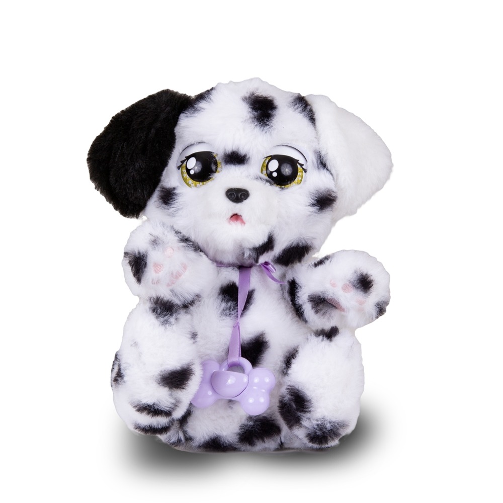 Най-очарователното кученце, толкова мило и сладко, че е невъзможно да не го харесаш! Има си два аксесоара: одеялце с красива шарка, която съответства на индивидуалността му, и любим биберон. Когато биберонът е в устата му, кученцето заспива. Като извадиш биберона, очите му се отварят и издава най-сладките звуци! Можеш да движиш малките му лапчки и главичка. Прозявка! Време е за сън. Сложи биберона обратно в устата на кученцето и то ще заспи, издавайки сладки звуци. Носи любимото си бебе кученце навсякъде с теб, като използваш дръжката на одеялото. Можеш и да сгънеш одеялото и да си направиш оригинална чантичка за рамо! 3 породи: кокер, хъски и далматинец (всяко се продава отделно). Кое ще си вземеш вкъщи? Батерии: 2x AAA батерии (включени в комплекта)