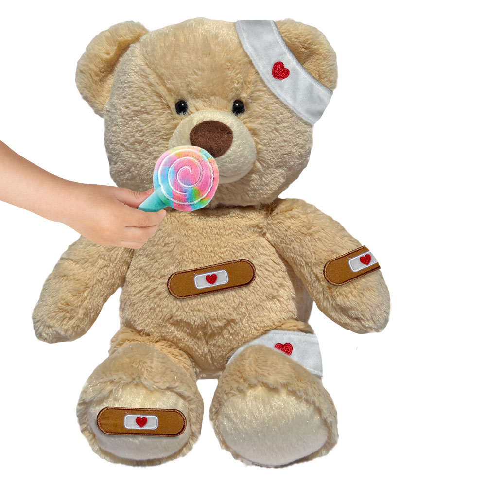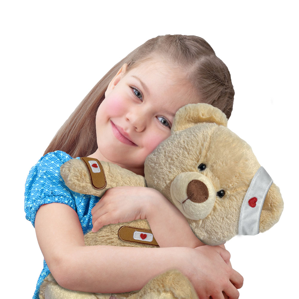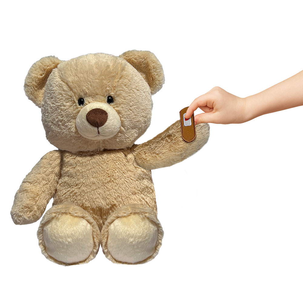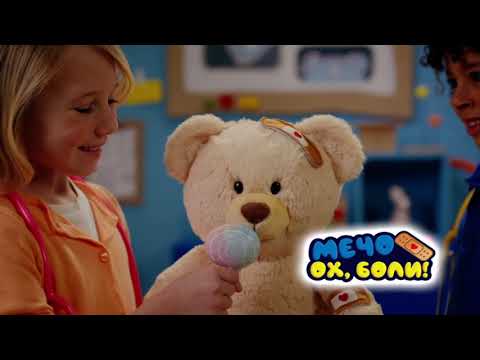Всичко е по-добре с интерактивното плюшеното мече – Мечо Ох, боли! Мечо е очарователен пухкав приятел, за когото можеш да се грижиш. Ох, боли ме главата! Ще сложиш ли лепенка на ох-чето ми? Аз съм непохватно мече, ще се погрижиш ли за мен? Мечо Ох, боли! говори на български език и ще ти каже как се чувства. Потърси червените светлини на главата, ръчичките, коремчето или крачетата му и сложи лепенка на ох-чето му. Идва и с близалка, за да го нахраниш.