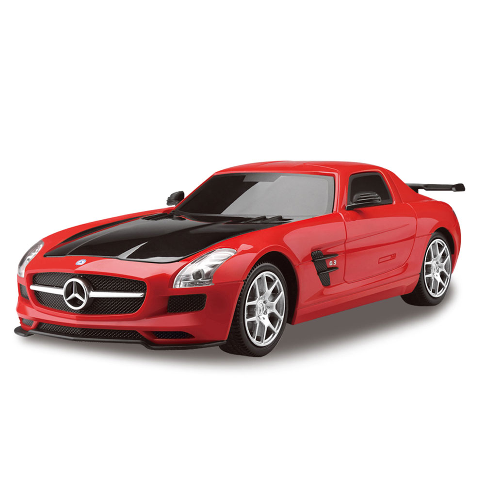 Пълнофункционална високоскоростна кола Mercedes-Benz SLS с дистанционно управление с честота 2,4 Ghz. Лицензиран автомобил. С фарове и задни светлини. 2,4 Ghz R/C система създава многочестотна лента, която може да поддържа до 12 играча в една и съща зона едновременно. Истински работещи окачвания с гуми с гумен захват и структура на диференциалния механизъм осигуряват прекрасно изживяване при шофиране. Наслади се на прекрасното време на шофиране! Размер на продукта: 19.5 X 9 X 5.5 см.