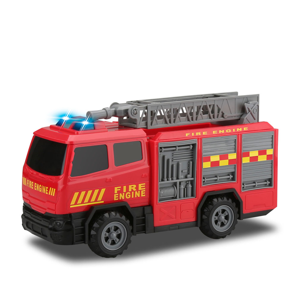 Внимание, пожарна аларма! Обади се на пожарната! С пожарна кола всеки малък пожарникар винаги ще бъде готов за помощ!Със светлинни и звукови ефекти, активирани с бутон на покрива – за още по-страхотни екшън приключения! Стълбата на покрива се прибира. Задвижва се с фрикционен механизъм. Размери: 30 X 13 X 16 см.