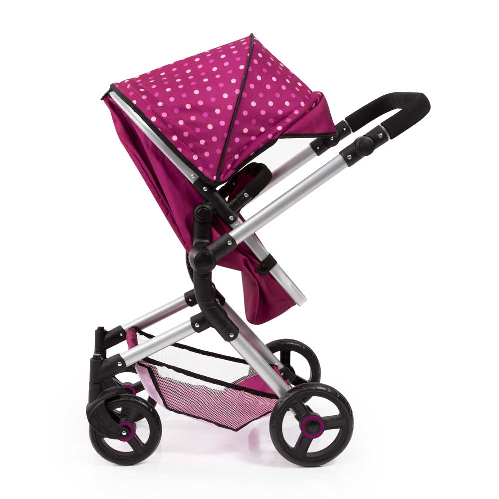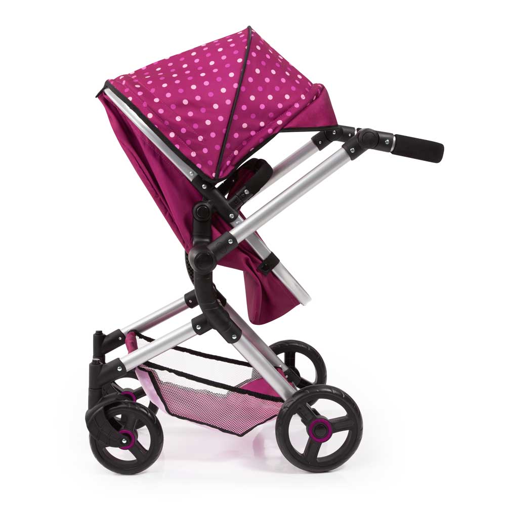Характеристики: Количката е с кош със свеж цвят и модерен дизайн. Подходяща е за кукли до 52 см. Трансформираща се. Сгъваема рамка за лесно съхранение и транспортиране. В долната част има кош за малки принадлежности. Регулируема дръжка с възможност за смяна на посоката. Височината на дръжката се регулира с височина от 68 до 86 см. Допълнителна чанта за принадлежности. Размерите на количката са: 79 x 42 x 86 см. Подходяща за деца над 3 години.