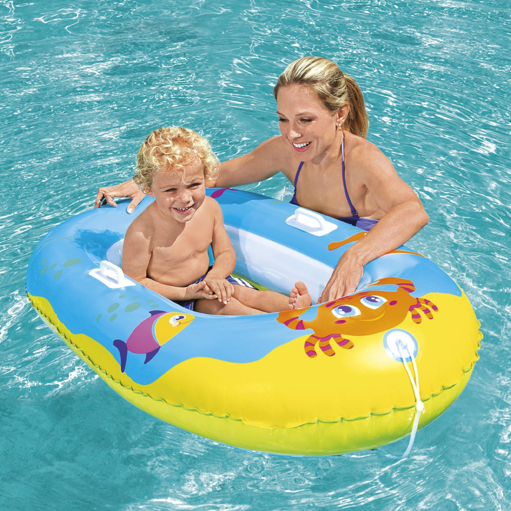 Характеристики: За да надуете най-бързо и лесно тази играчка, ви е необходима помпа. При спукване на надуваемата играчка, може да я залепите с лепило. Дръжки за допълнителна безопасност. Надуваемо дъно. Размери: 119 х 79 см. Материал: PVC Подходящо за деца на възраст 3-6 години. Асортимент. Доставка според наличностите