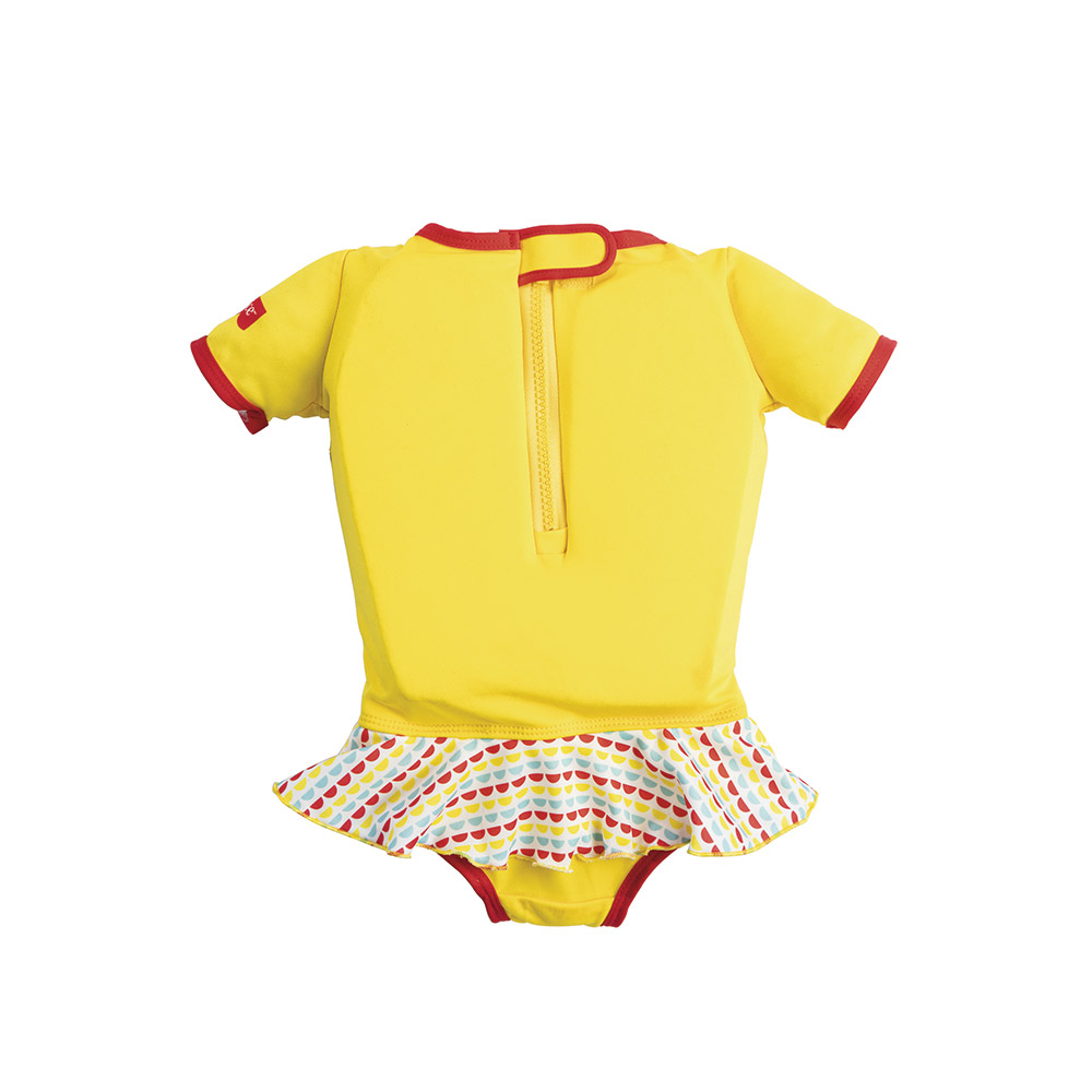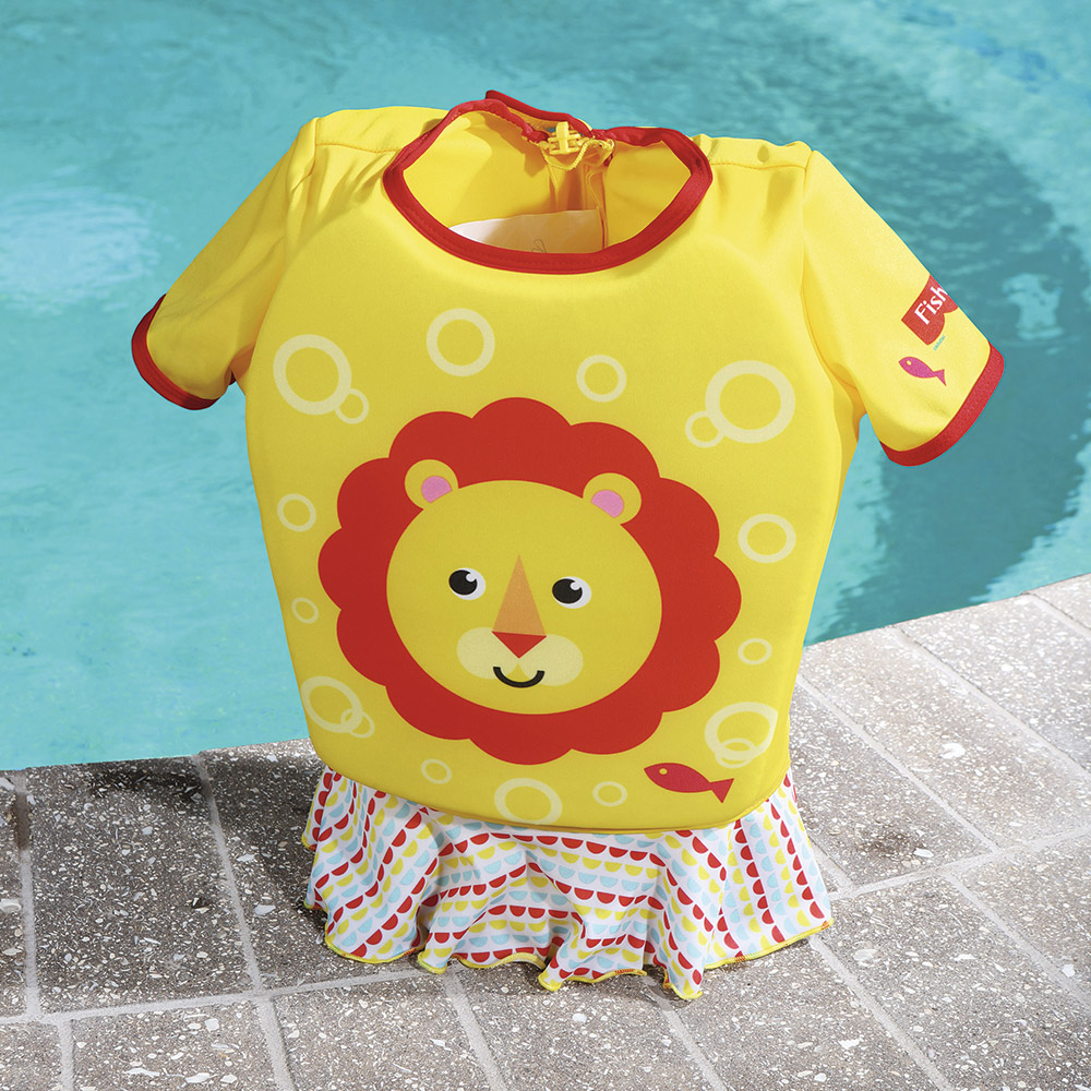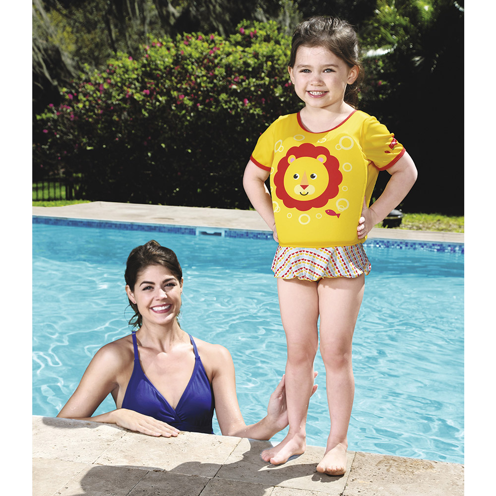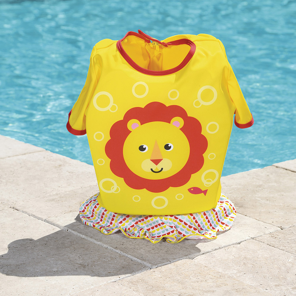 Характеристики: • Очарователният бански костюм е продукт на „Bestway“ по лиценз „Фишър Цена“. • Банският костюм е необходим за едно малко дете на плажа или басейна. • Облеклото е изработено от удобен, приятен на допир материал. • Вътре е зашита пяна, така че дори и по-малко опитните малки плувци да се чувстват по-безопасно във водата. • Вложките от пяна не позволяват на детето да се потопи прекалено много във водата. • Банският костюм е снабден със здрав цип на гърба. • Интензивният жълт цвят на облеклото и изразителната графика ще направят детето по-видимо във водата. • Тъканта, от която се изработва костюма, има висок защитен фактор (50 + UPF) срещу вредното ултравиолетово лъчение. Размери: • S / M: за деца от 1 до 3 години ( 11-18 кг); • M / L: за деца от 3 до 6 години ( 18 – 30 кг); Асортимент. Доставка според наличностите