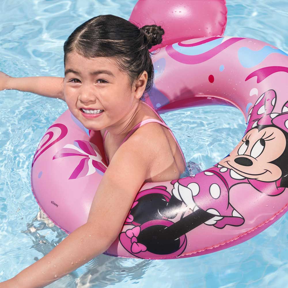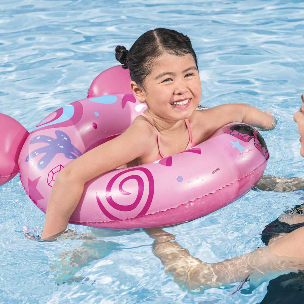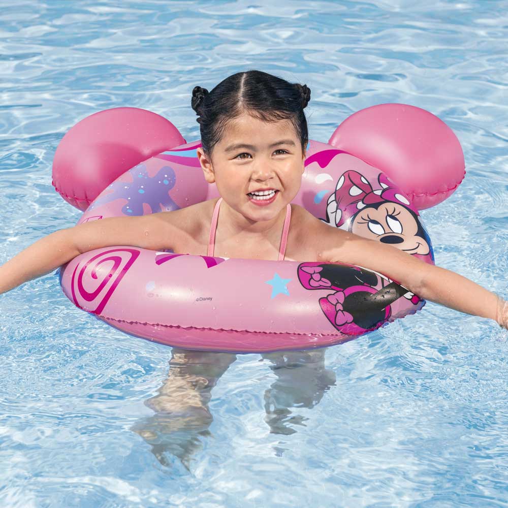 С пояса Disney Minnie Mouse можеш да плуваш с любимата си героиня! Идеален за деца на възраст 3-6 години, които се нуждаят от малко подкрепа във водата. Този пояс е също лесен за надуване, изпускане и съхранение. С Мини Маус на борда, ще изживееш идеалното лято. Размер: 74см x 76см