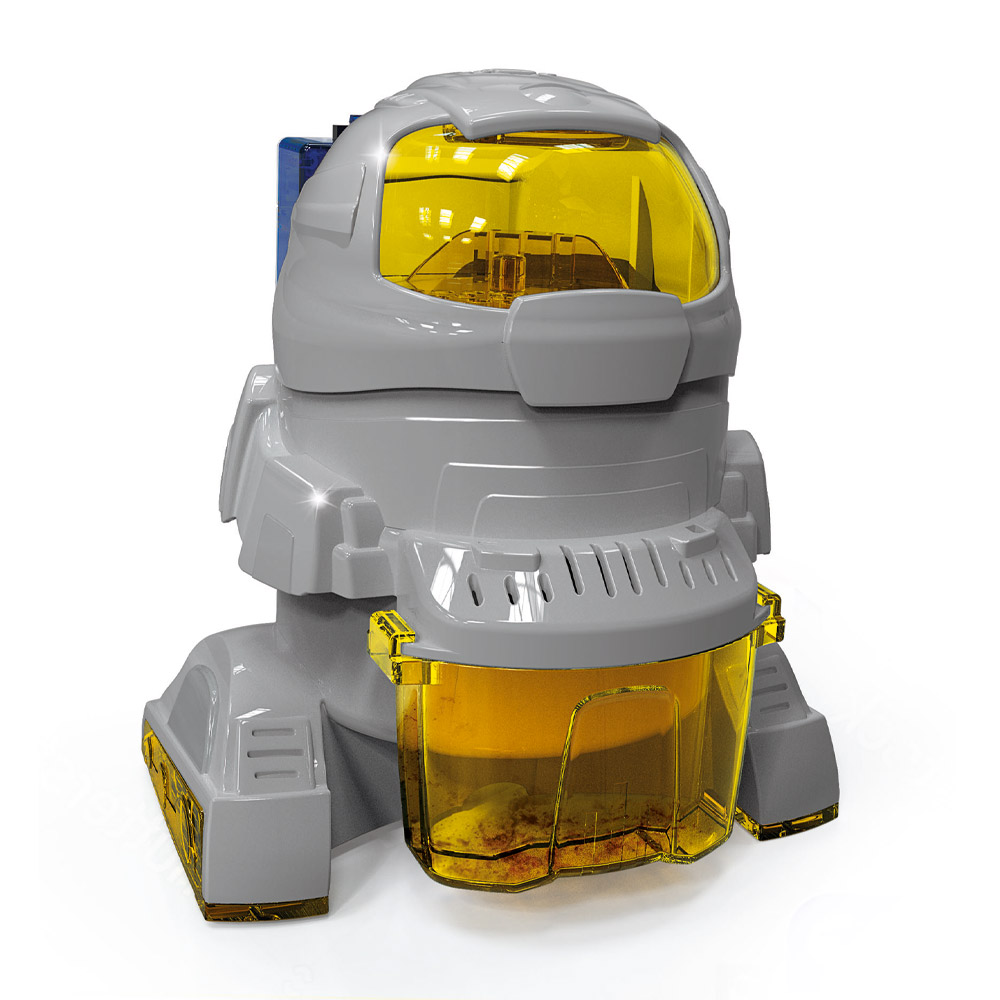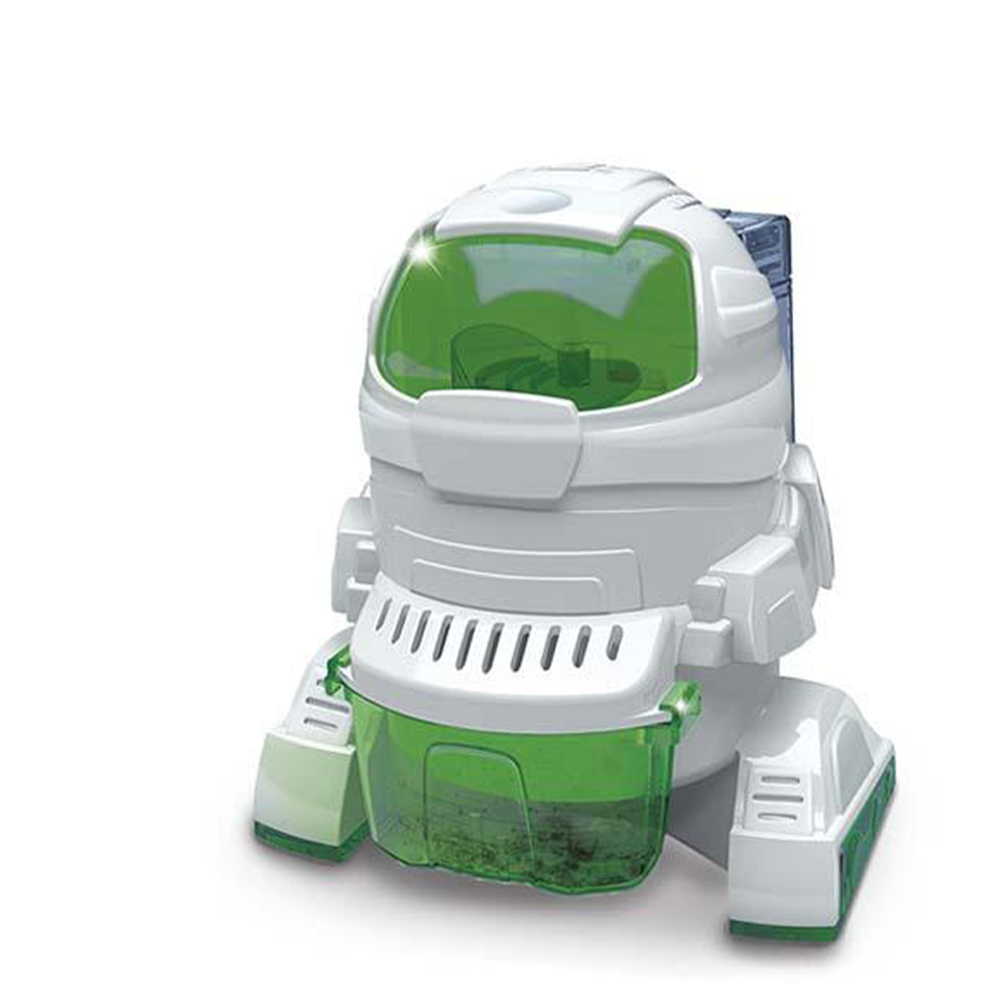 С този комплект можете да изградите робот, който може да се движи сам чрез вибрации. Както ще видите, моторът, който захранва робота, е свързан с вентилатор, което позволява на EcoBot да засмуква много леки частици, като например хлебни трохи, малки парчета хартия и полистиролни микросфери. След сглобяването на робота, всичко, което трябва да направите, е да свържете проводниците, след това да го включите и роботът ще започне своята мисия, почиствайки работния плот, на който е поставен! Характеристики: • Първо поставете робота на работна повърхност, след това преместете превключвателя, за да го включите. • Роботът ще започне да вибрира, вентилаторът ще се обърне и въздухът ще бъде засмукан заедно с частиците, които роботът среща по пътя си. • Захранване: 3 VDC. Батерии: 2 x 1.5 V AA / LR6 (не са включени в комплекта). Подходящ за деца над 8 годишна възраст. Асортимент. Доставка според наличностите.