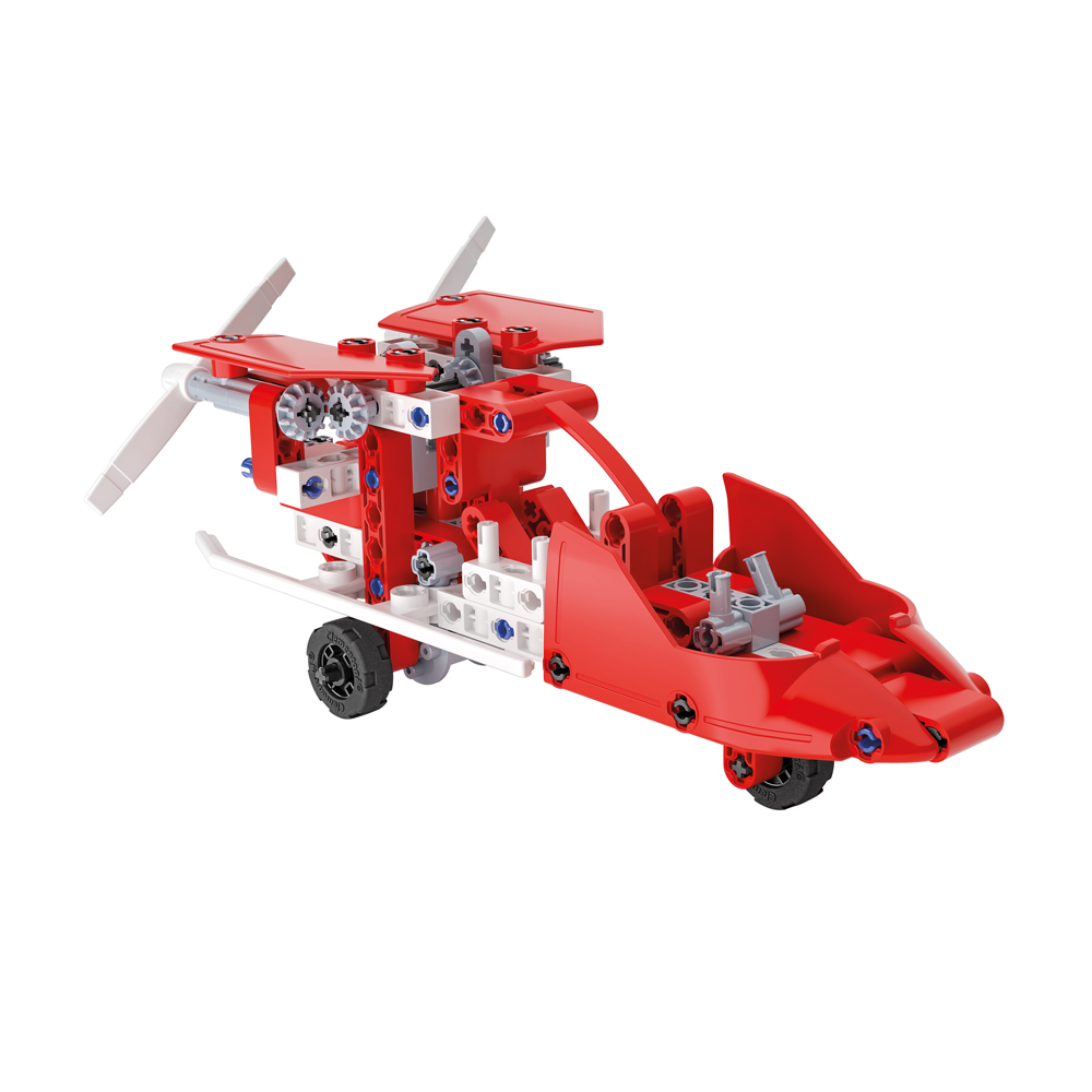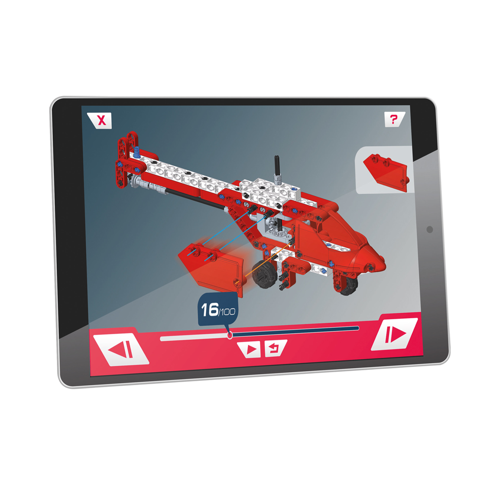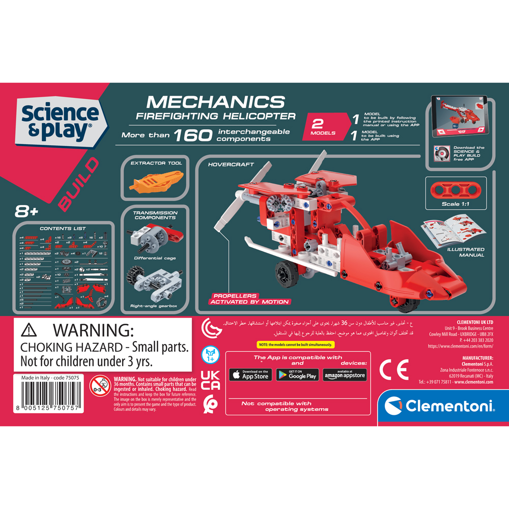 Механичната лаборатория с игрална система за конструиране, която позволява на децата да създадат модели с тематичен дизайн на пожарникарски хеликоптери с движещи се части. Децата може да използват своята изобретателност, за да създават собствени реалистични модели, като следват основните принципи на физиката и механиката.Развиващият се ум на децата, съчетан с тяхното въображение, ще иска да разбере връзките и разстоянието между различните части, докато строят модела си. Дейностите имат различна сложност и са подходящи за деца на възраст над 8 години, в зависимост от индивидуалните способности на детето. Брой части: 160. Подходящ за деца над 8 години.