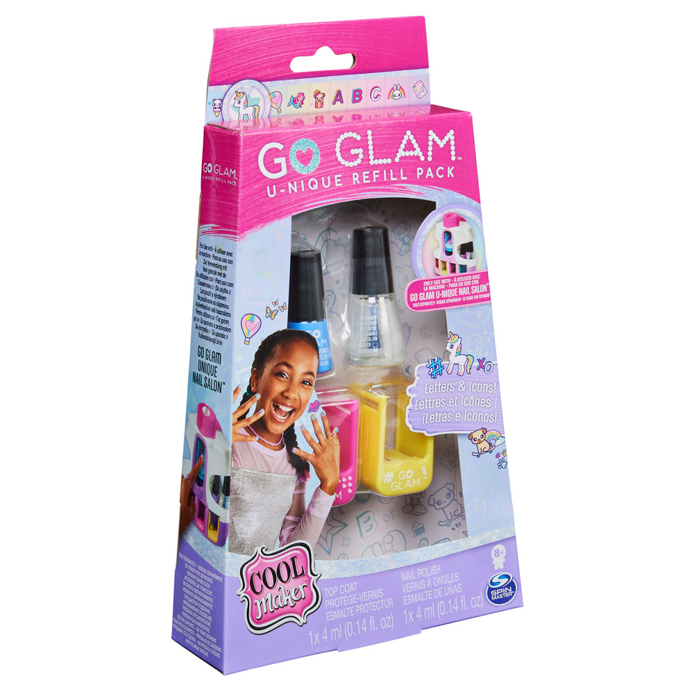 Изрази своя стил и си създай уникален маникюр и педикюр! Лесно и забавно е с Cool Maker GO GLAM U-nique Nail Salon! Лакирай и нанеси страхотна щампа по свой избор от 120 възможни дизайна, сред които сладки емотикони, буквички и други модерни мотиви, с които да направиш уникален маникюр. Можеш да експериментираш и да направиш всеки нокът различен! Комплектът включва: цветен лак; топ лак; 2 касетки с щампи за нокти. Лаковете са нетоксични. Подходящо за деца над 8 години. Асортимент. Доставка според наличностите. Този пълнител работи само със студио Cool Maker Go Glam U-nique Nail Salon!