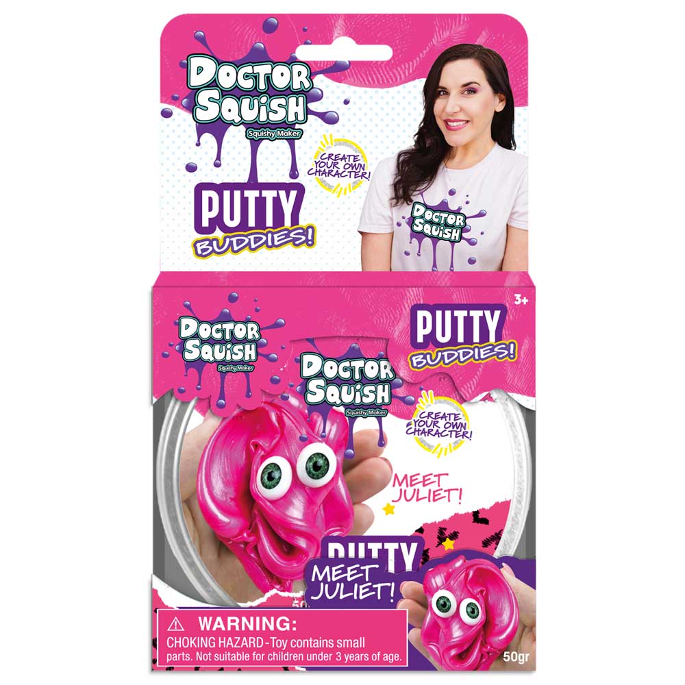 Doctor Squish е отново тук, този път под формата на супер готина моделираща смес. Идеална за стискане, мачкане и създаване на смешни приятели в различни форми. Всеки комплект моделираща смес идва в различен цвят, а към него има очички, с които да направиш своя забавен приятел, както и уникални аксесоари като пица, панделка, телефон и други, с които да му придадеш характер! Избери любимия си цвят и създавай различни форми, които можеш да мачкаш и стискаш както пожелаеш!