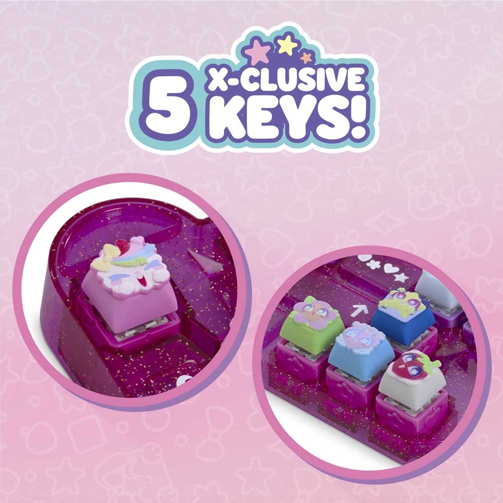 Влез в ритъма на щракането с новите Clickeez! Всяко Clickee е истинско малко копче от клавиатура, което щрака и трака като истинско. Свързвай любимите си геройчета едно към друго и създай собствено ключодържателче, което да носиш навсякъде с теб. Открий над 70 различни героя в очарователни серии – Cozy Garden, Strawberry Treats, Kawaii Dreams и Celestial Sky. Ще успееш ли да намериш лимитираното издание @The_Lucky_Bunny?Комплектът включва: 15 Clickeez фигурки, 1 Clickeez клавиатура и колекционерско ръководство. Фигурките се падат на случаен принцип.