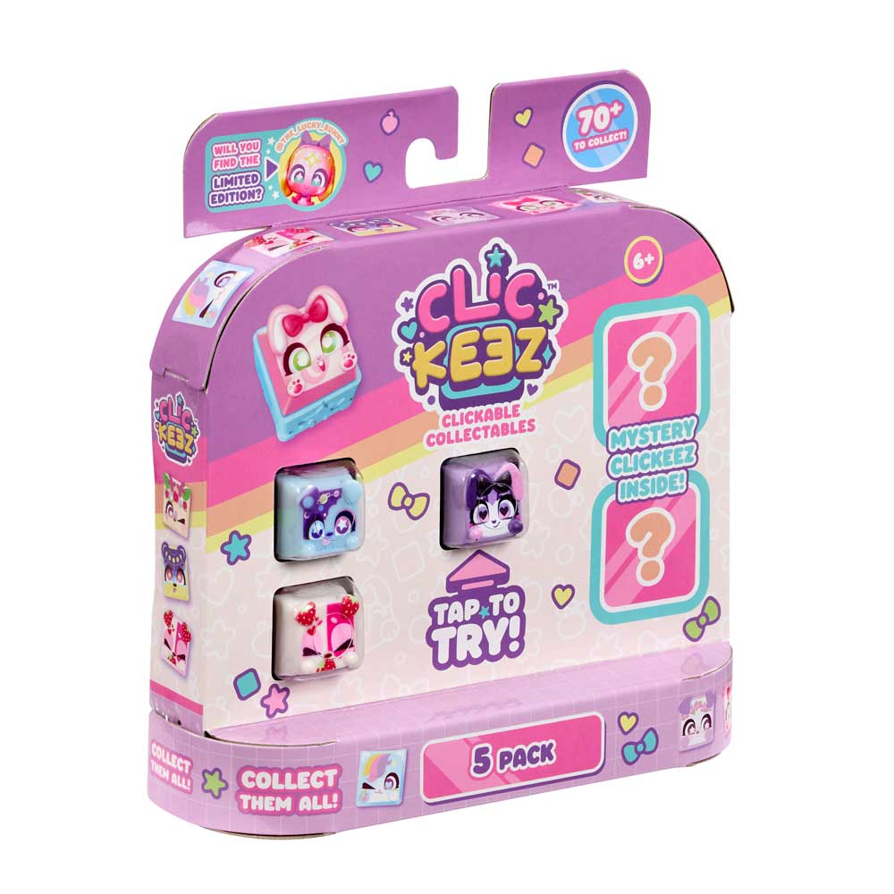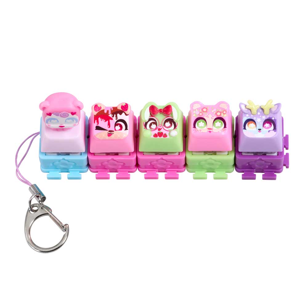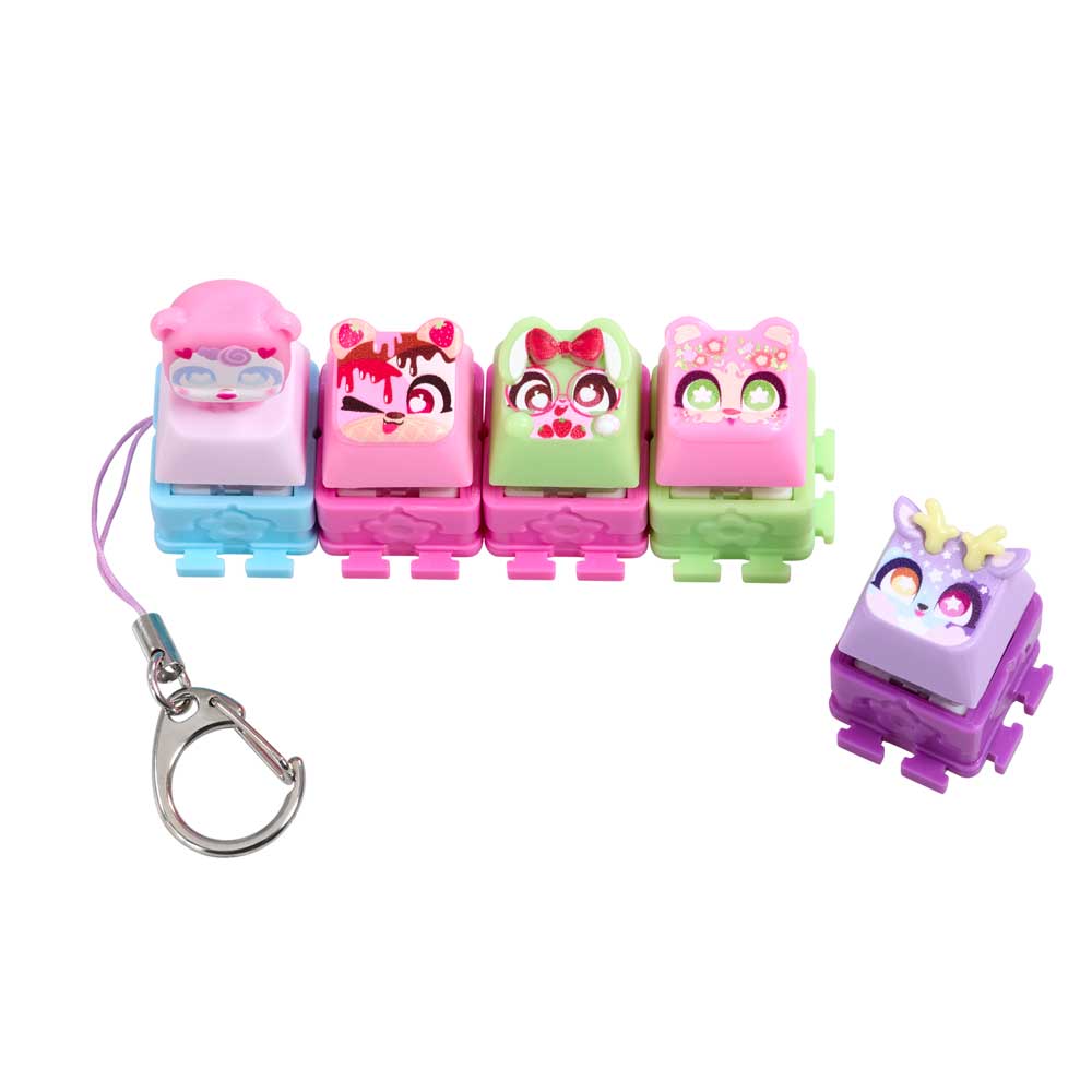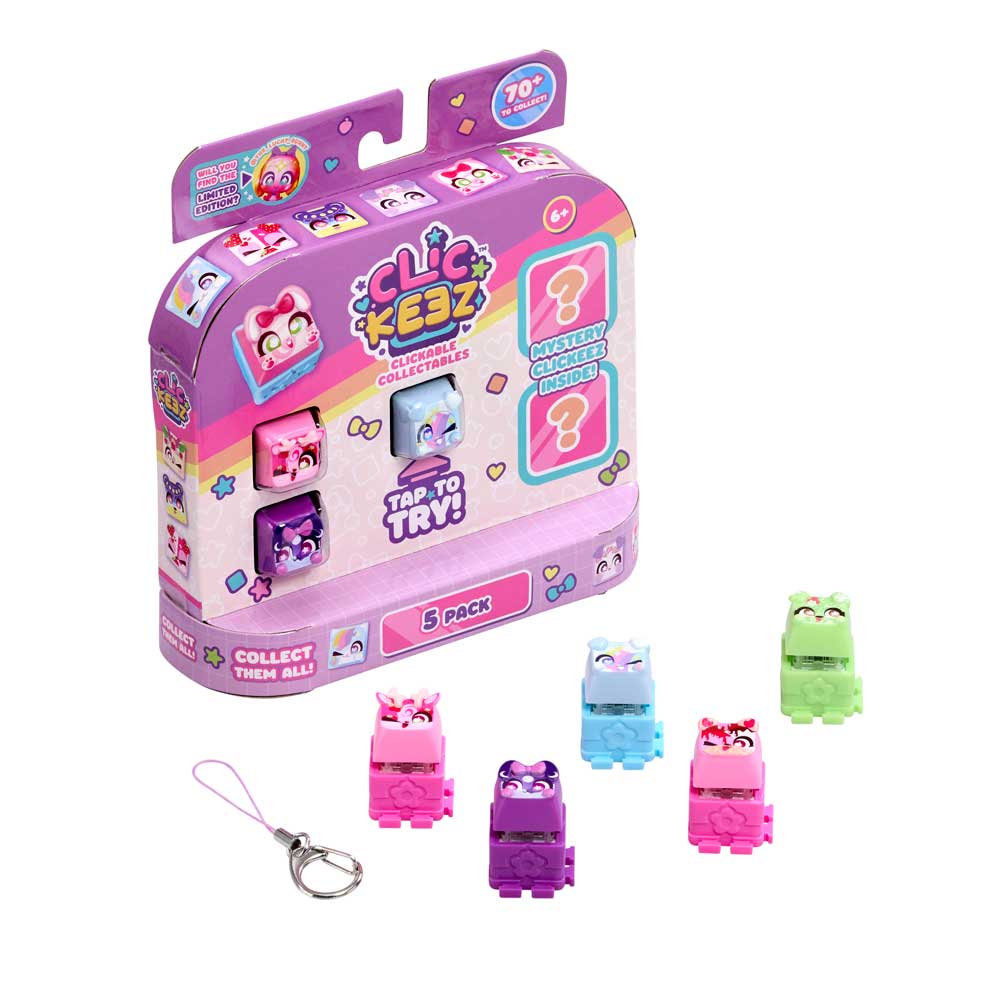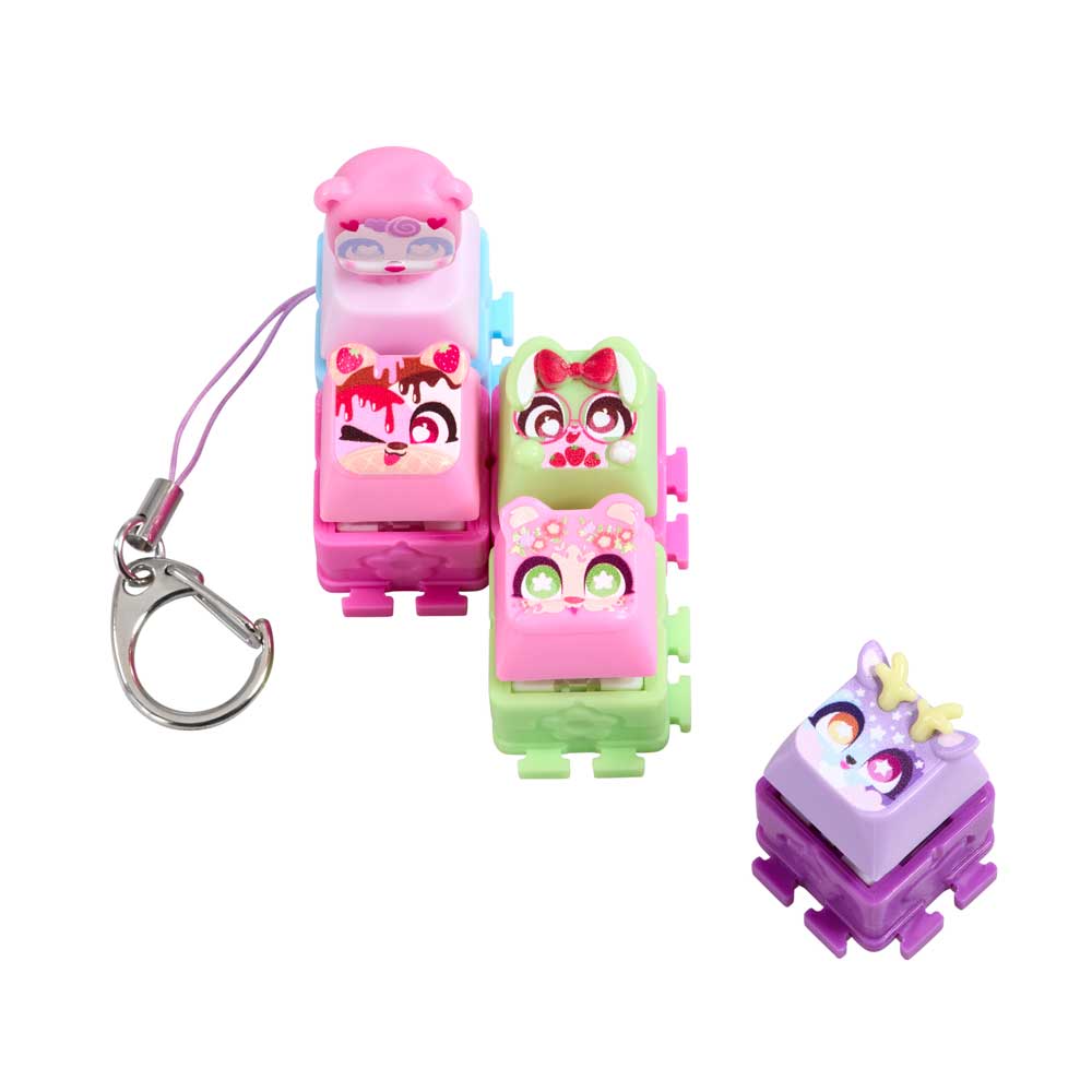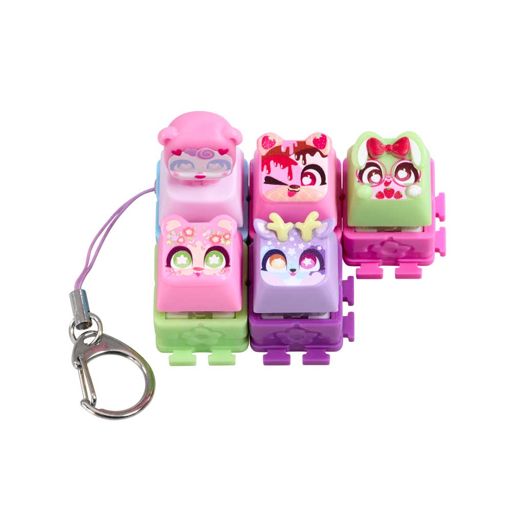 Влез в ритъма на щракането с новите Clickeez! Всяко Clickee е истинско малко копче от клавиатура, което щрака и трака като истинско. Свързвай любимите си геройчета едно към друго и създай собствено ключодържателче, което да носиш навсякъде с теб. Открий над 70 различни героя в очарователни серии – Cozy Garden, Strawberry Treats, Kawaii Dreams и Celestial Sky. Ще успееш ли да намериш лимитираното издание @The_Lucky_Bunny? Комплектът включва: 5 завършени Clickeez фигурки, 1 ключодържател и колекционерско ръководство. Героите се падат на случаен принцип.