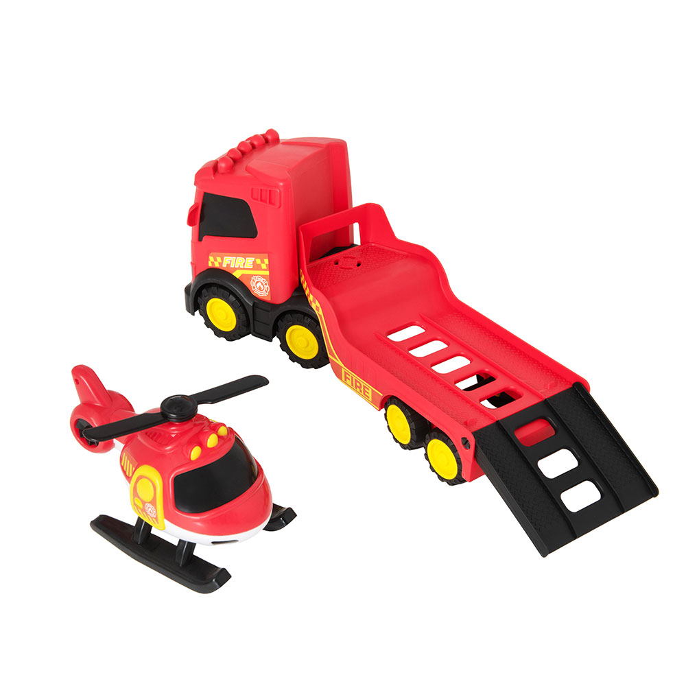 Полети на помощ – точно като спасителен хеликоптер в реалния живот! Спаси деня, като реагираш на авария при пожар, докато приближаваш сцената с пожарния мега транспортер CHUNKY TRUCKS с хеликоптер! Проектиран в ярки, забавни цветове, този комплект е със закръглени ъгли с масивен дизайн и разполага с ръчно въртяща се перка на витлото! Създавайки безброй часове на въображение и творческо забавление, CHUNKY TRUCKS Fire Transporter с хеликоптер е идеалният подарък за всеки малък герой! Размер на продукта: прибл. вкл. опаковка 40.5 х 13.5 х 18.8 см.