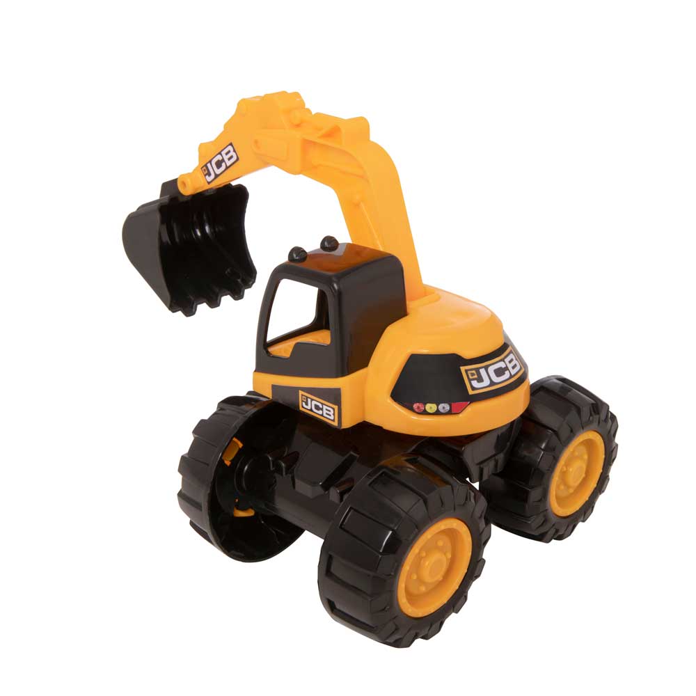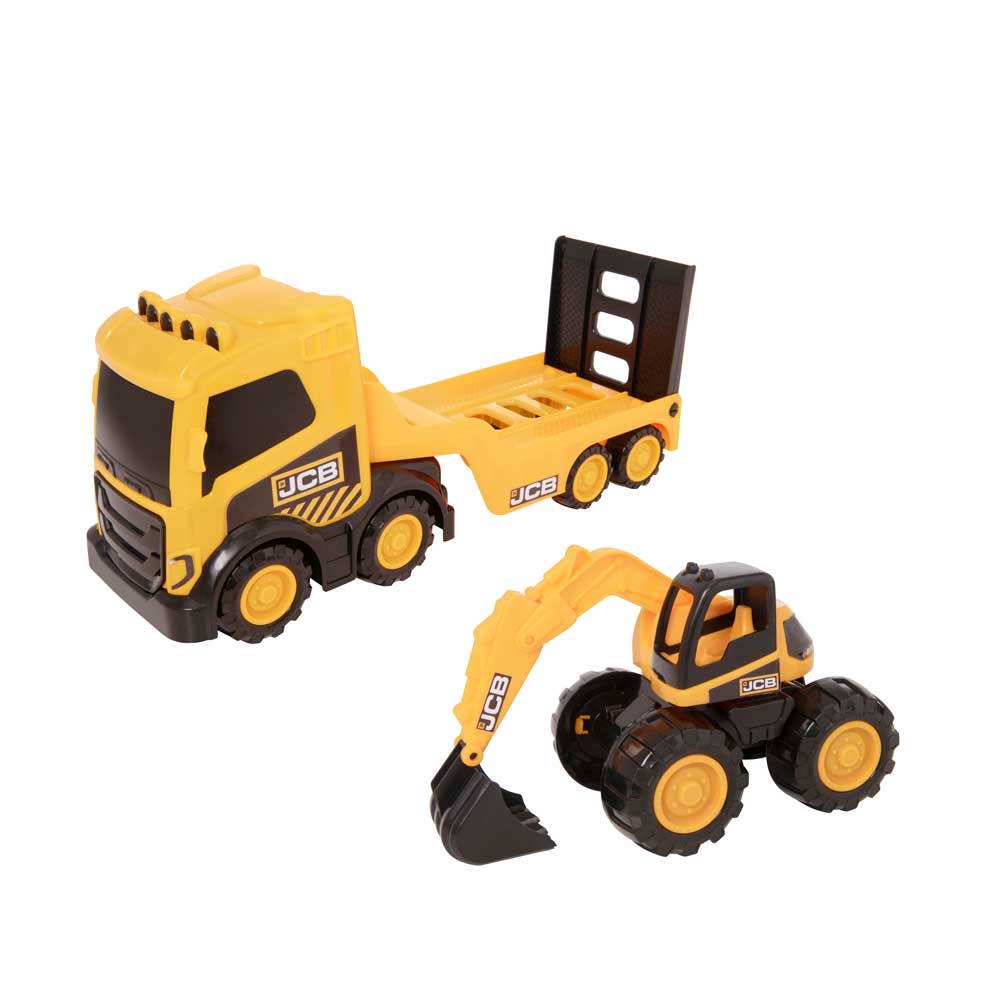 HTI TEAMSTERZ JCB ще те накара да се чувстваш като истински строител! Играчката е вдъхновена от JCB, който е водещ европейски производител на строителна и селскостопанска техника. Натовари багера върху ръчно управляваната задна рампа на камиона и го закрепи на място, като повдигнеш рампата обратно. Предната стрела на багера също може да се движи ръчно, за да държи и пренася предмети. Създавайки безброй часове на въображение и творческо забавление, TEAMSTERZ JCB Камион с Багер е идеалният подарък за всеки начинаещ малък строител! Продуктът е издръжлив и изработен от висококачествен материал. Когато става дума за висококачествени, вълнуващи и реалистични строителни превозни средства, официалната гама JCB на Teamsterz е перфектният избор.