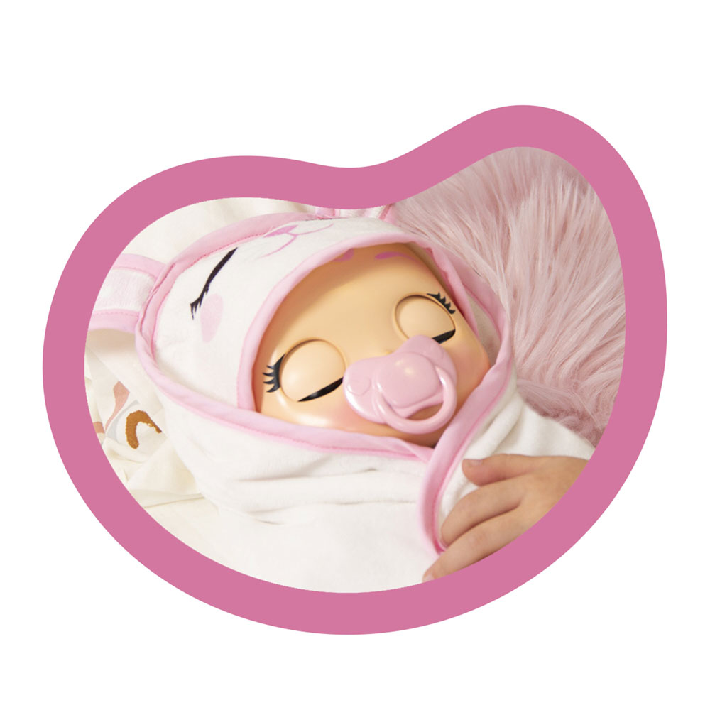 Погрижи се за новороденото бебе Кони точно както би се грижила за истинско бебе! С всички реалистични характеристики на новородено, Кони е лека и супер мека, така че можеш да я гушкаш, когато се нуждае от теб. Истинската магия е, когато държиш Кони в ръцете си, носейки интерактивната гривна… Връзката ще накара Кони да се чувства сигурна и защитена. Гледай как бузките й се изчервяват, а след това заспива отново. Кони идва с 6 аксесоара: биберон, бебешка бутилка, гривна за самоличност, персонализирано одеяло, бебешка дрънкалка и вълшебната интерактивна гривна.