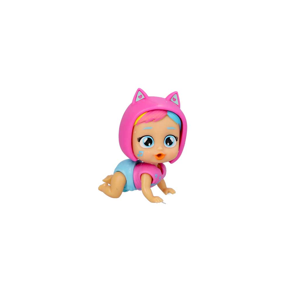 Открий магическия свят на Cry Babies PlayTime! Запознай се с новата Мили – сладкото пълзящо бебе, което идва с весела активна гимнастика и магически изненади. С истински сълзи и аксесоари, всяка игра е пълна с обич и въображение. Пълзящата Мили идва с активна гимнастика и няколко игрални аксесоара. Гимнастиката има арка с подвижни елементи и въртящо се колелце в основата, което разкрива различни изненади, като поддържа вниманието и любопитството. Нахрани Мили с бебешкото шише, леко стисни главата ѝ и ще видиш как плаче с истински сълзи. Магическите сълзи разкриват сладка маркировка на бузките ѝ. Включва още биберон, бебешко шише, качулка, тениска, топка и постелка за игра. Гъбичка не е включена.