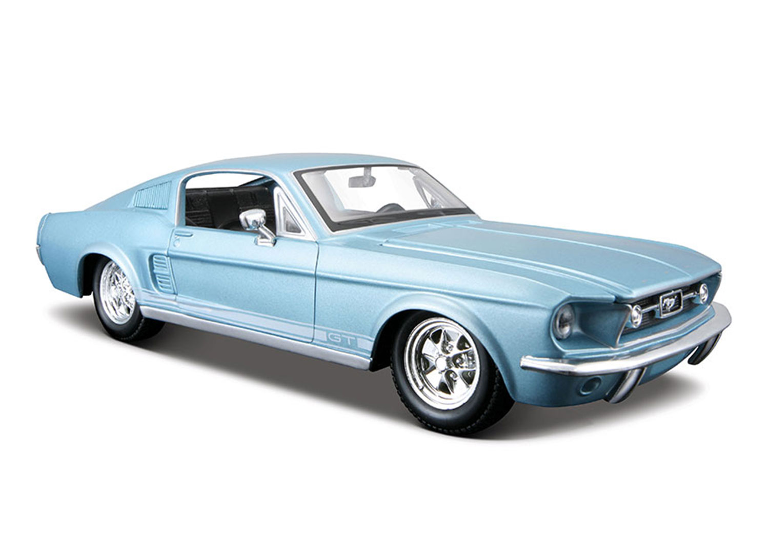 Страхотен реалистичен дизайн FORD MUSTANG GT. Превозното средство е в свеж червен цвят. Допълнителни детайли, като високодетайлния двигател и отварящи се врати. Мащаб: 1:24.
