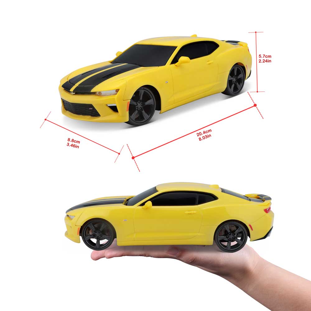 Почувствай духа на американската мощ с този умален модел на Chevrolet Camaro SS! Реалистичният дизайн и динамичното управление правят играта още по-вълнуваща – перфектна за всички фенове на бързите коли. Характеристики: Много детайлен дизайн, който пресъздава оригиналния спортен автомобил с голяма прецизност. 2.4 GHz честота за стабилно управление и по-добър обхват. Бърза и маневрена пълнофункционална кола. Мащаб: 1:24.