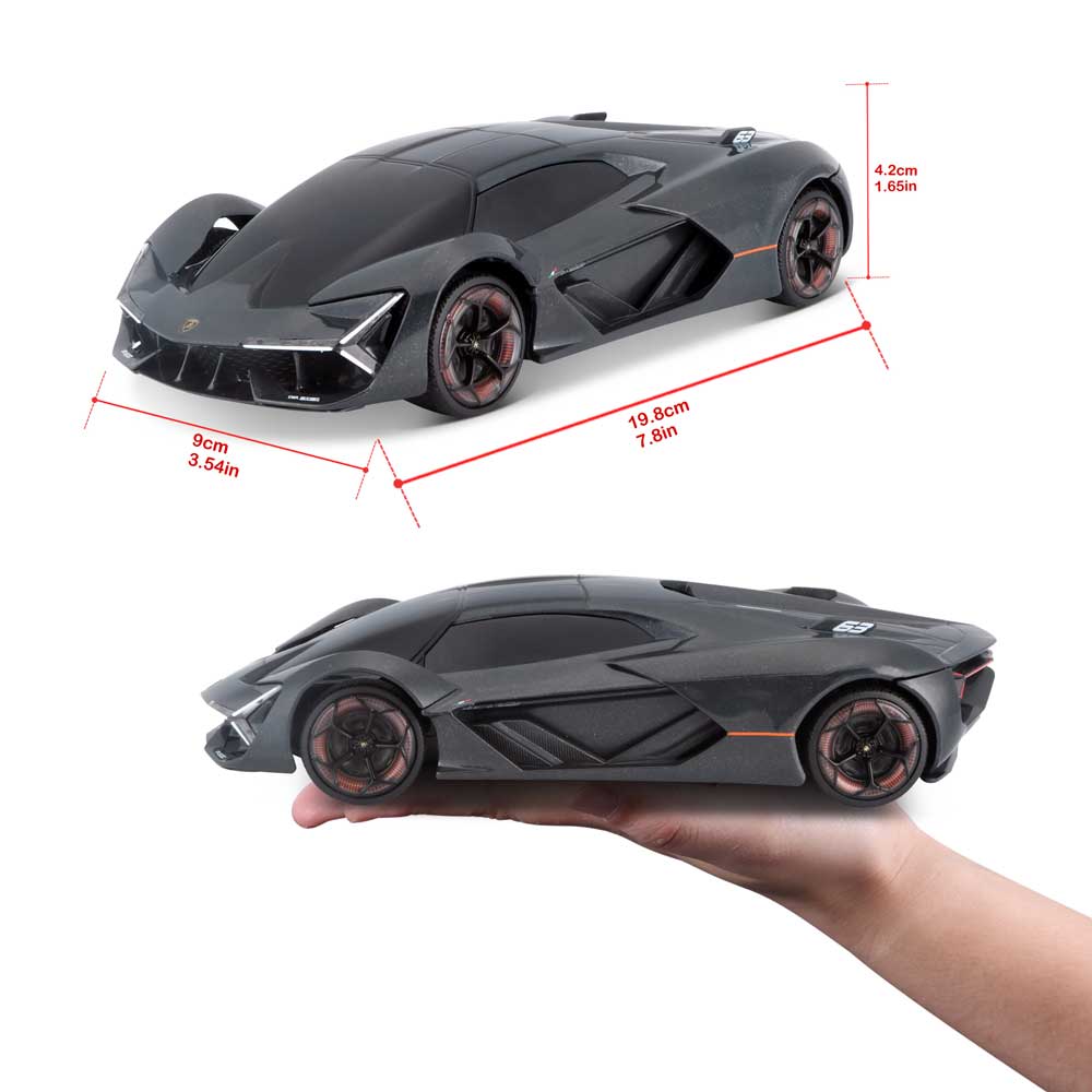Добре дошъл в бъдещето на автомобилите! Lamborghini Terzo Millennio е концептуален суперавтомобил, създаден с визия за иновации, скорост и футуристичен дизайн. Сега можеш да го управляваш благодарение на този умален RC модел! Характеристики: Уникален, футуристичен дизайн, вдъхновен от оригиналния прототип на Lamborghini. 2.4 GHz честота за стабилно управление и по-добър обхват. Бърза и маневрена пълнофункционална кола. Мащаб: 1:24.