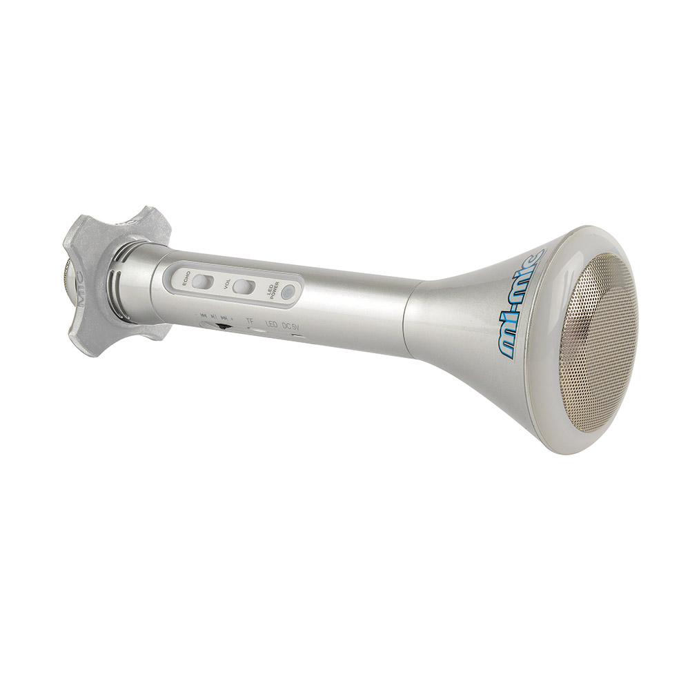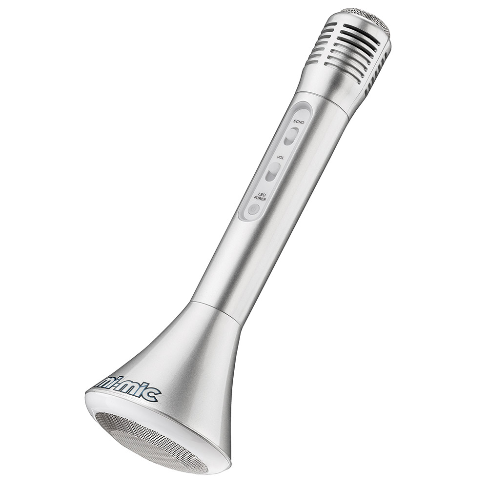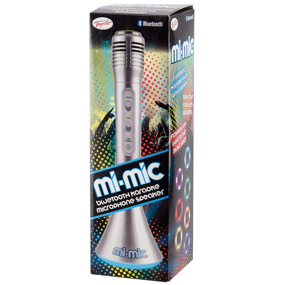 Страхотният Mi-Mic е вече тук! Свържи го с телефон или друго Bluetooth® устройство. Пусни любимата си музика и микрофонът ще насложи гласа ти. С вградени светлинни ефекти и ехо функция, за още по- вълнуващи изпълнения! Характеристики: • Mi-Mic Bluetooth микрофон с усилвател; • Размери на продукта: 80 x 80 x 245 мм.; • Тегло: 250 гр.; • Батерия: 3.7V/1200mAh Li-ion; • Bluetooth версия: 4.2; • Време за зареждане: До 2 часа; • Време за игра: До 3 часа; • Охват на излъчване: 10 метра; • Честотен обхват: 20Hz – 20kHz. Функции: • Пускане / Пауза; • Предишна / Следваща песен; • Сила на звука; • Слот за Micro SD карта памет; • Порт за зареждане; • LED светлини; • Говорител; • Ехо ефект. Подходящ за деца над 3 години Асортимент. Доставка според наличностите.