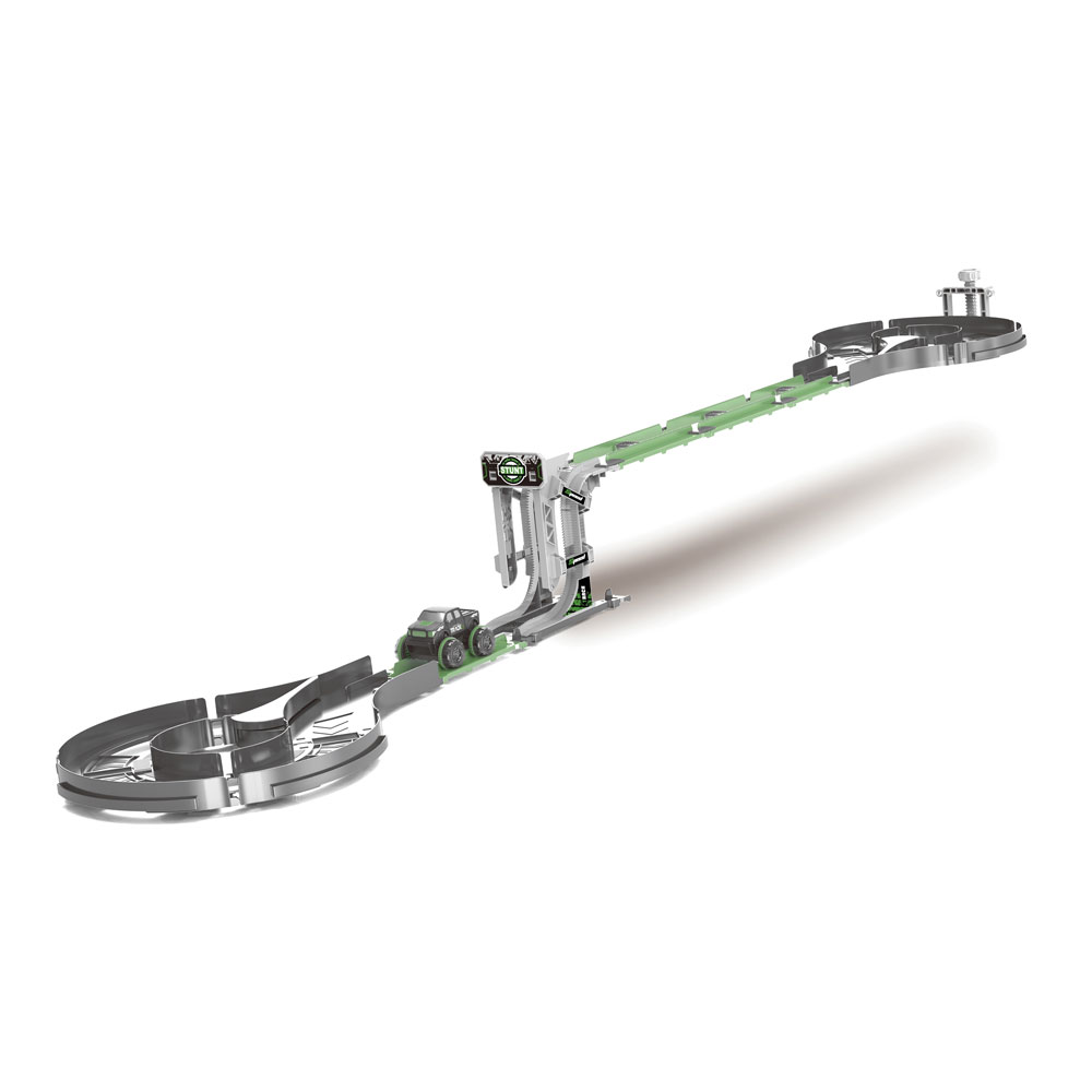 Пистата може да бъде окачена във въздуха, например, между две маси. Гумите на колата светят в страхотни цветове. Комплектът включва:• игрален сет – писта;• количка със светещи гуми. Брой части: 45. Батерии: 3 бр. тип 1.5V AAA (не са включени в комплекта). Подходяща за деца над 3 години.