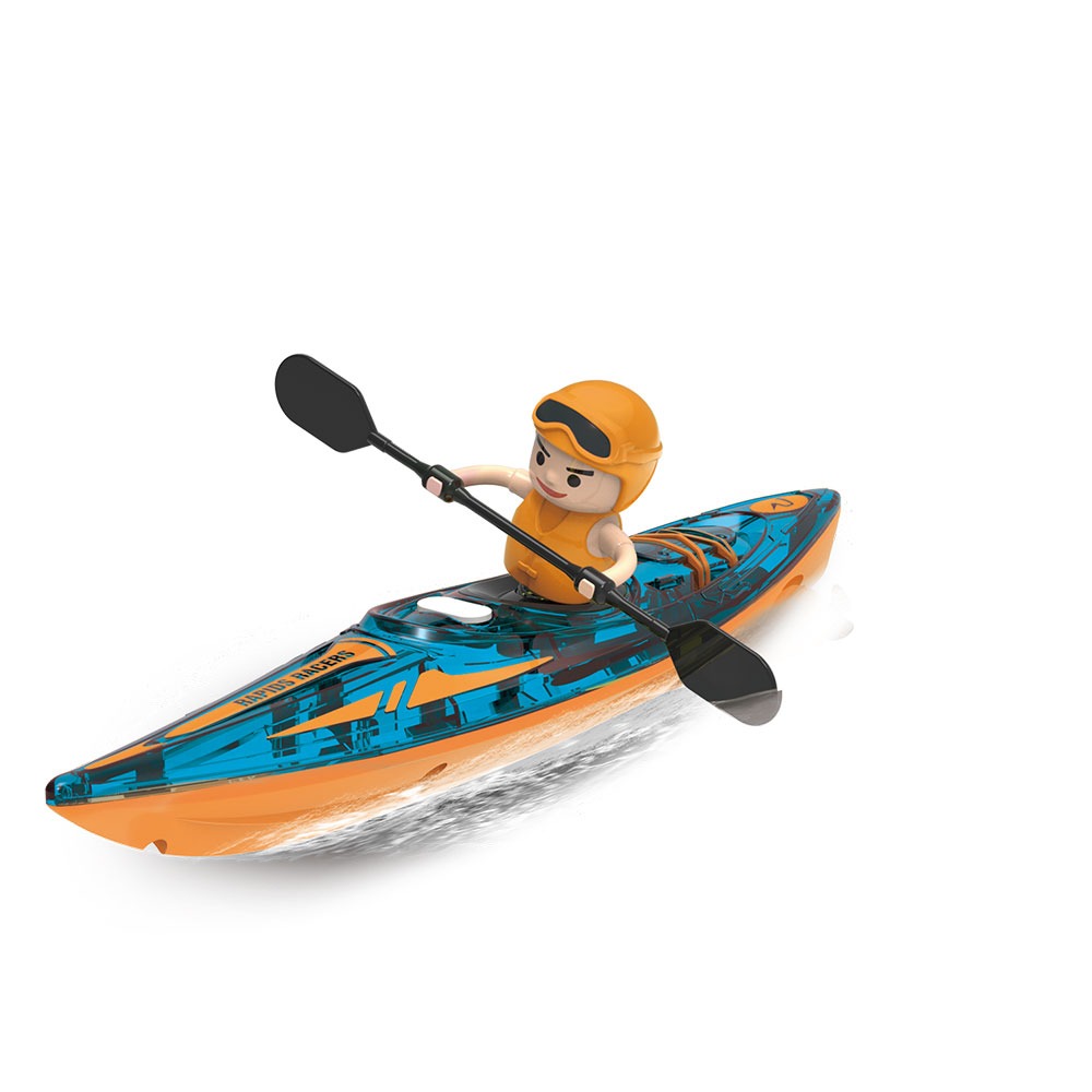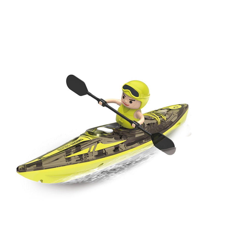 Приготви се за водни приключения с радиоуправляемите скоростни каяци Rapid Raiders – бързи, стилни и изключително лесни за управление! Състезавай се с близки и приятели и виж кой ще спечели гонката. Батерията 3.7V 500 mAh осигурява до 15 минути плаване с едно зареждане, а дистанционното управление е удобно за хващане само с една ръка. Контролерите изискват общо 4 х АAA батерии (не са включени). Каяците пресъзадават реалистично движението на гребане и имат защита срещу преобръщане. Изключват се автоматично след изваждане от водата.
