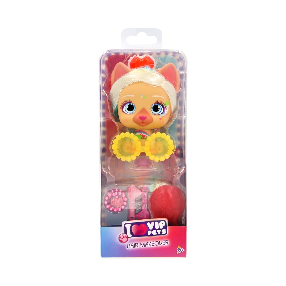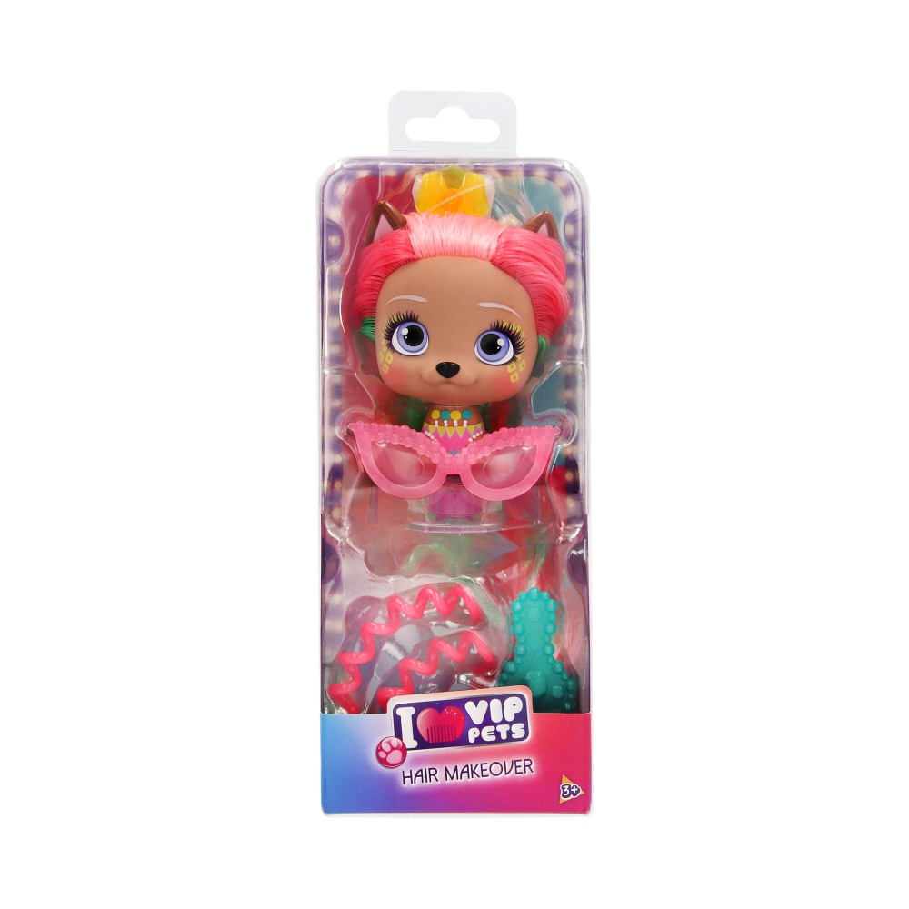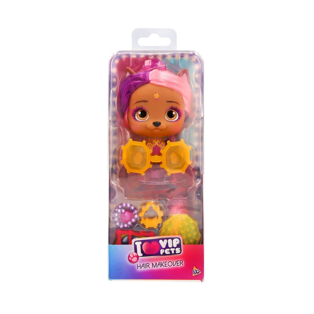 Модните кученца Vip Pets са отново тук, по-стилни от всякога! VIP Pets Hair Makeover са най-модерните кученца със супер дълга коса – цели 30 см! Има 6 героини с различен уникален стил, всяка със свой собствен характер и хобита. Въпреки това, има нещо, което ги свързва всички – тяхната страст към прическите! VIP Pets обичат да носят косата си в различни стилове в зависимост от повода, но се нуждаят от твоята помощ, за да създадат перфектната визия със 7+ включени аксесоара! Създавай уникални визии, които подчертават индивидуалността и стила на всяко модно кученце Vip Pets Hair Makeover!