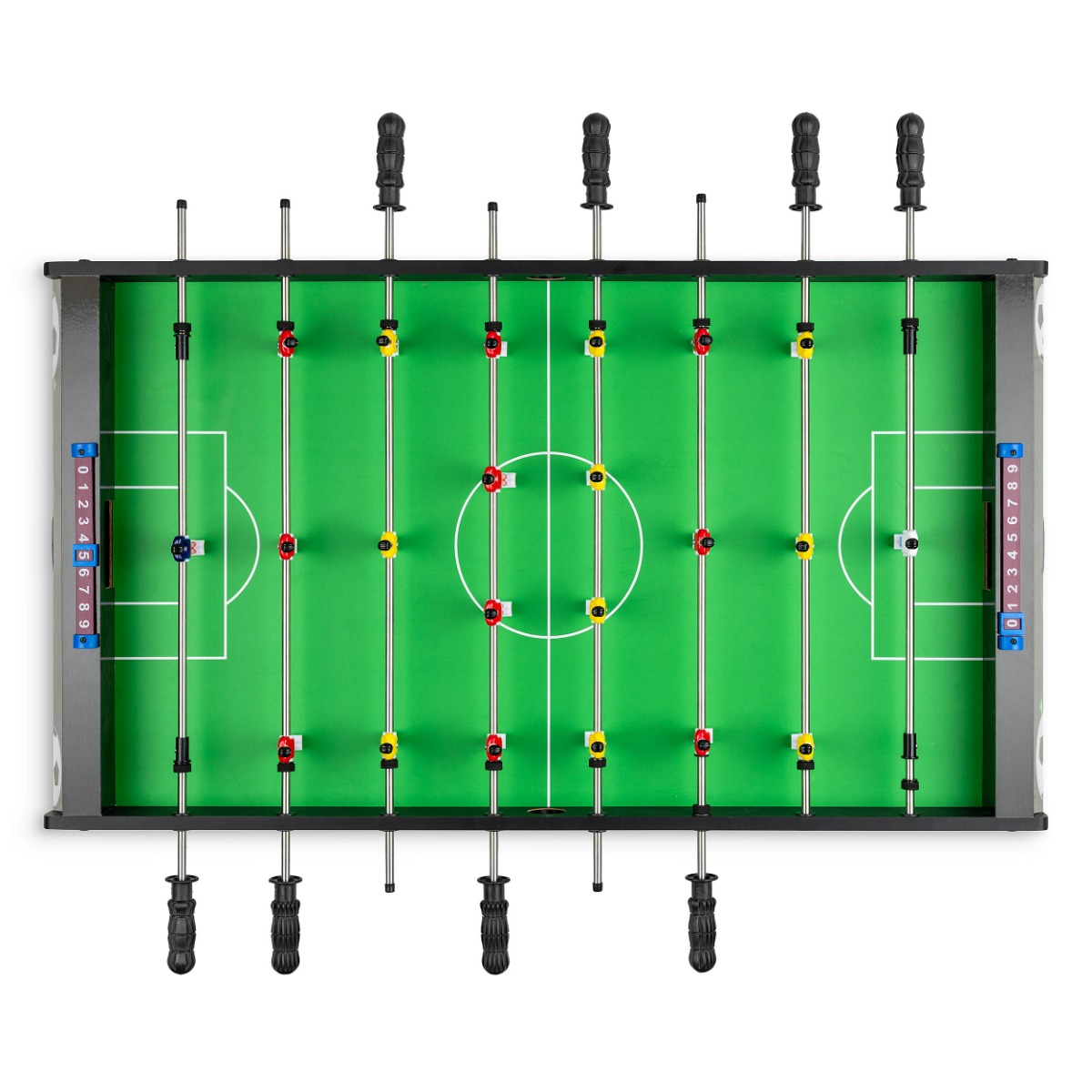 Най-доброто допълнение към семейните игри! Независимо дали си футболен ентусиаст или търсиш класическо забавление, тази джага обещава часове забавление. Тази игрална маса е отличен ангажиращ начин за учене на работа в екип и спортно майсторство, а лесната настройка ти гарантира, че можеш да започнеш да играеш за нула време. С включените 2 топчета забавлението никога не спира! Събери своя отбор и нека игрите започнат. Включва: 1 маса за футболна игра, 2 футболни топчетаПриблизителни размери: 69 см x 51 см x 91,5 см