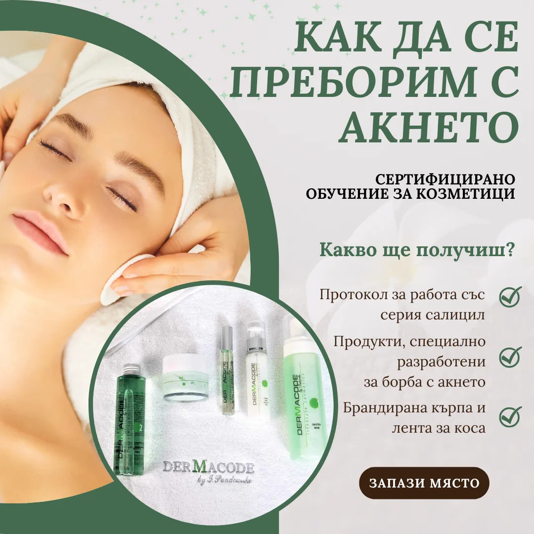 Това е уникална възможност да разширите своите умения и да предложите на клиентите си най-доброто в грижата за проблемна кожа. Сертификатът, който ще получите, ще утвърди вашата експертиза и ще ви помогне да привлечете повече клиенти.